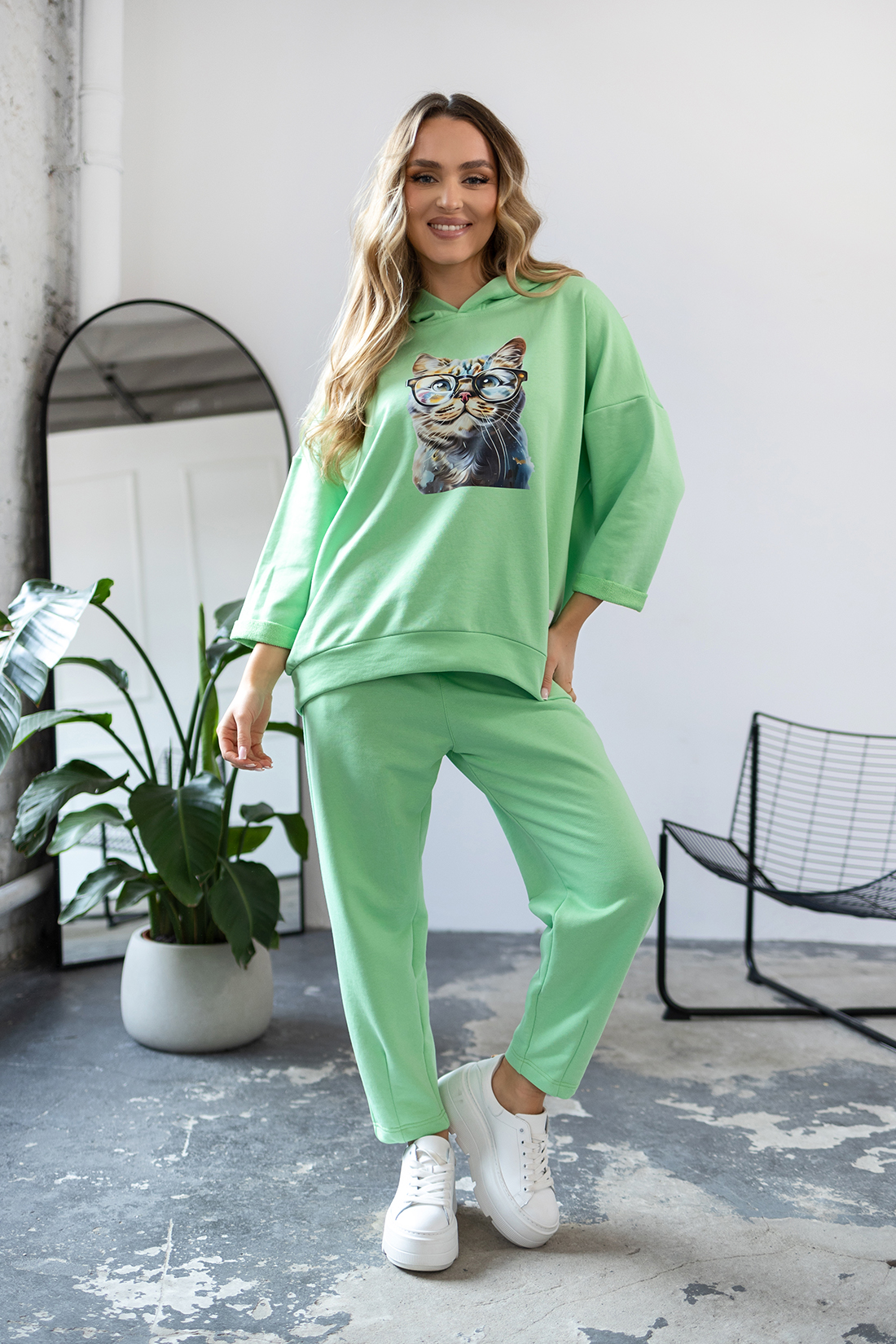 BLUZA DRESOWA Z KAPTUREM CAT- Limonka - obrazek 4
