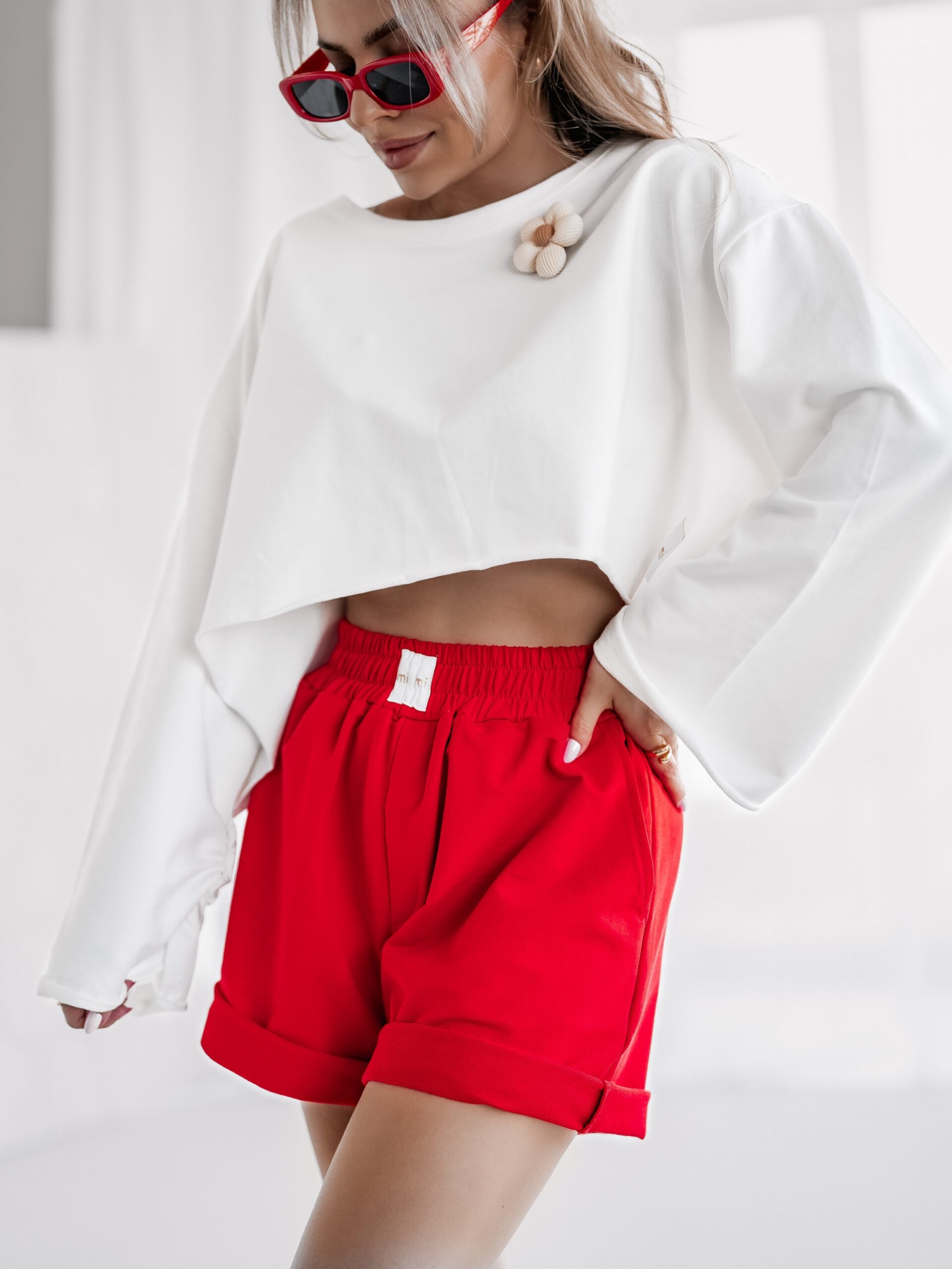 BLUZKA KRÓTKA Z KWIATKIEM – Biały
