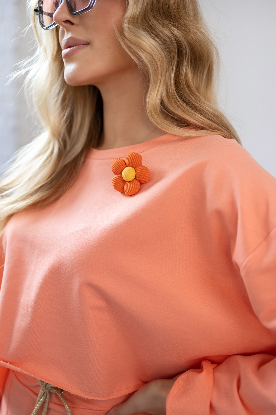 BLUZKA KRÓTKA Z KWIATKIEM – Pomarańczowy
