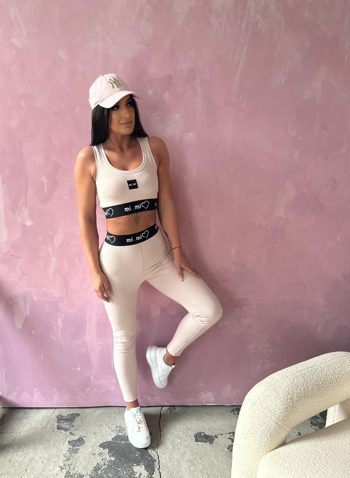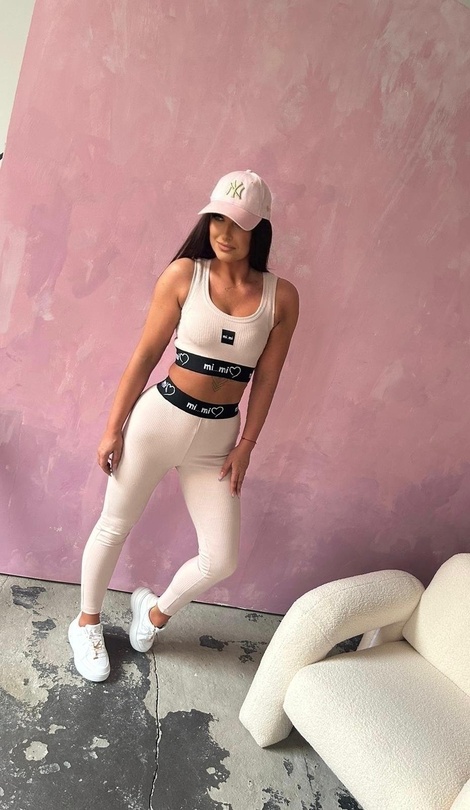LEGINSY Z LOGO MIMI – Jasny różowy