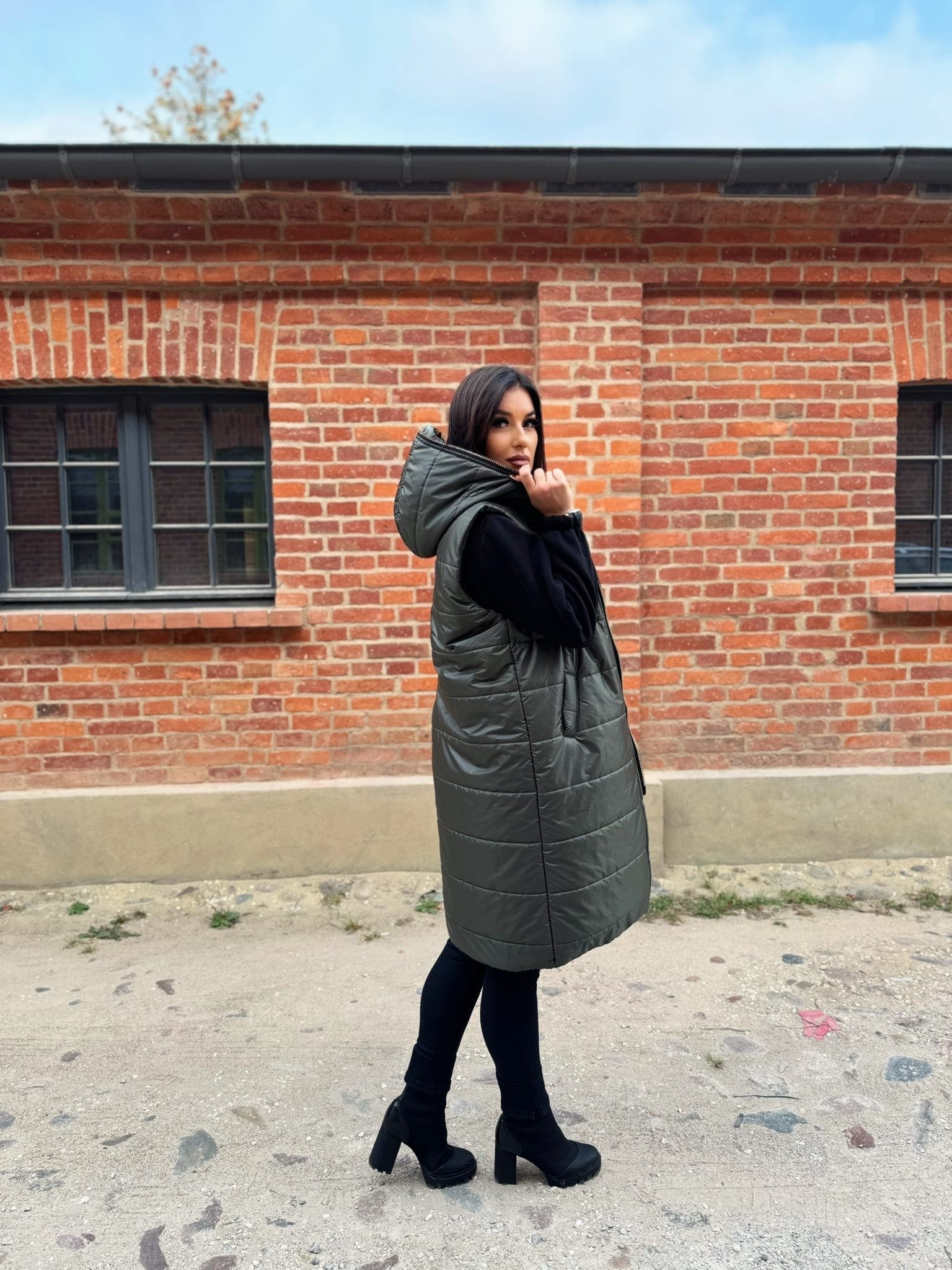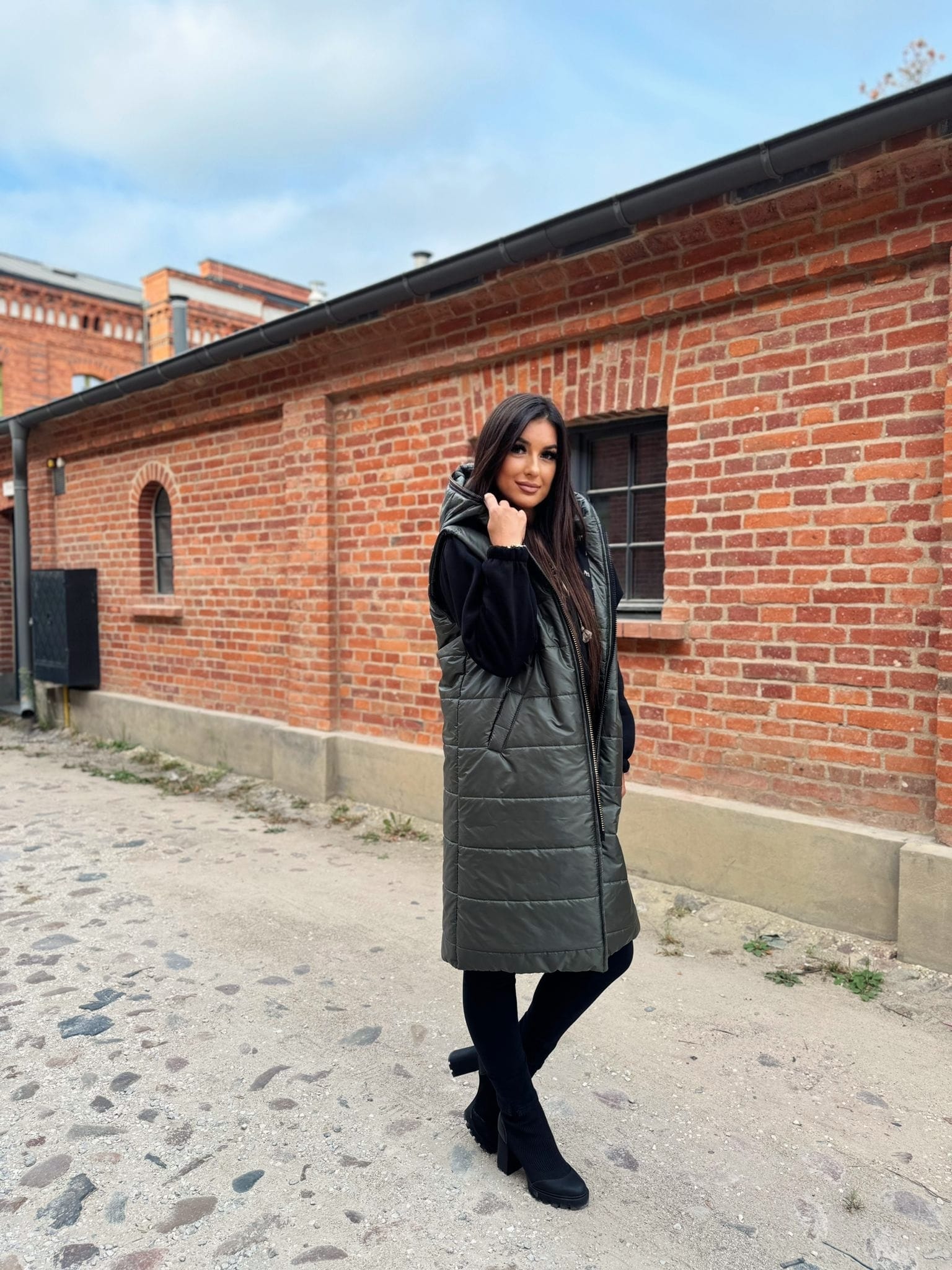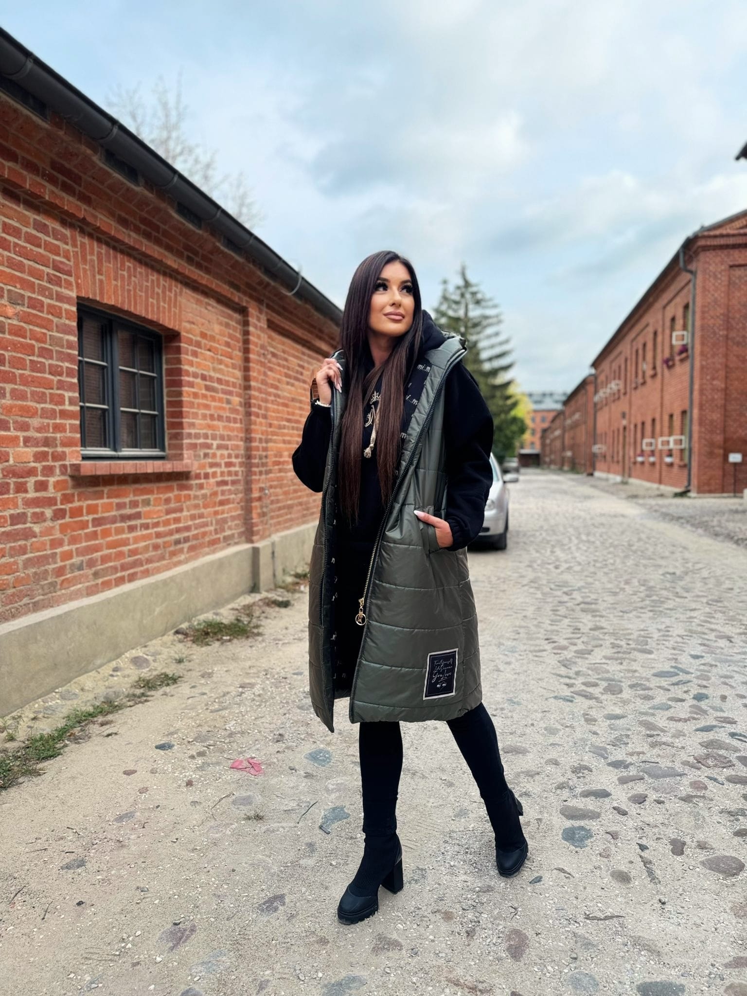 PIKOWANA KAMIZELKA LONG – Oliwkowy