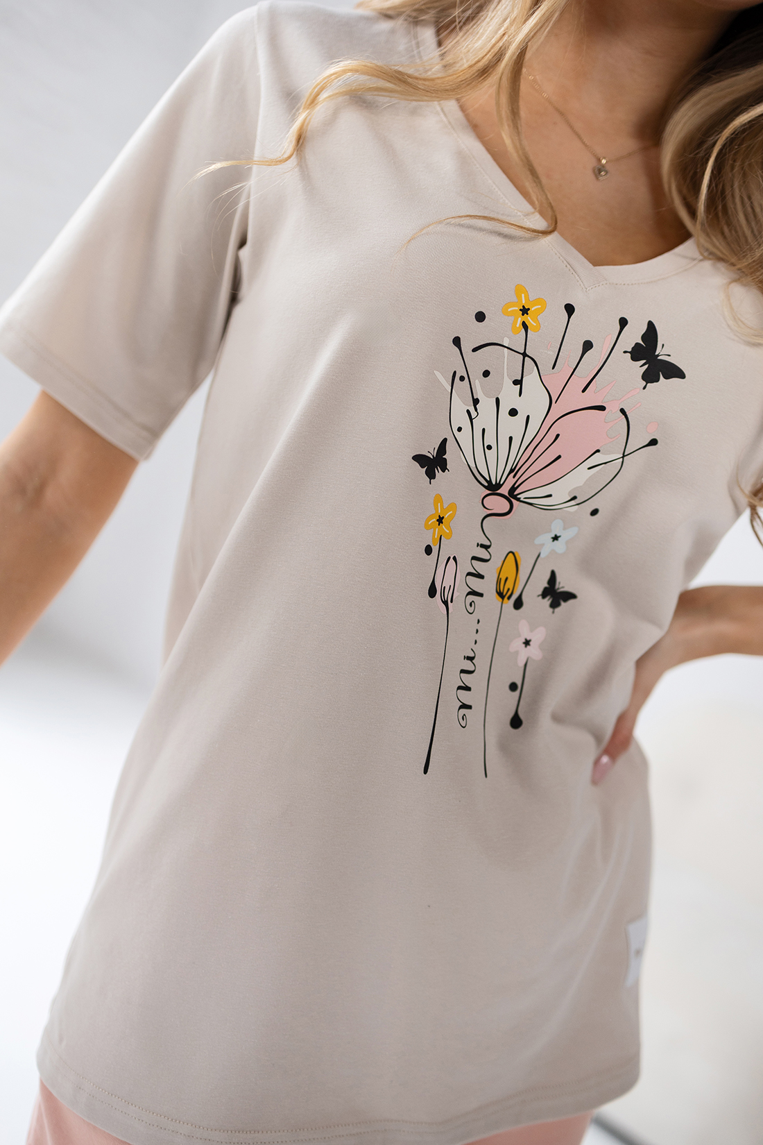 T-SHIRT CLASSIC SEREK Z APLIKACJĄ – Beżowy