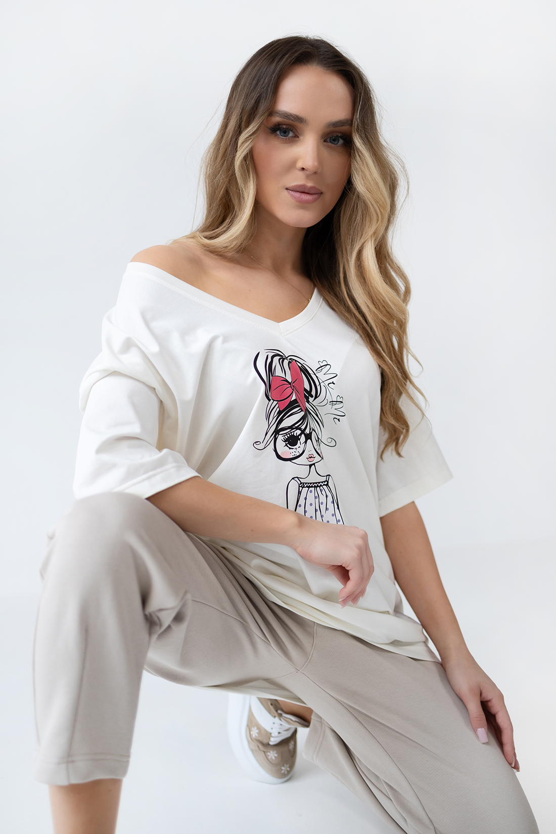 BLUZA BAWEŁNIANA VANI DEKOLT – Jasny beżowy
