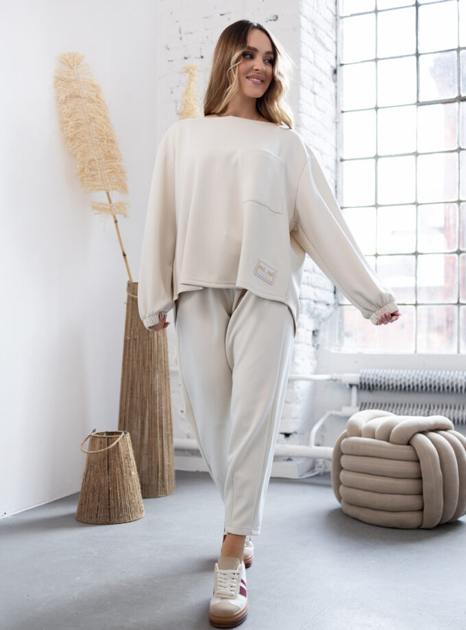 BLUZKA ASYMETRYCZNA Z KAPTUREM ELAINE – Jasny beżowy