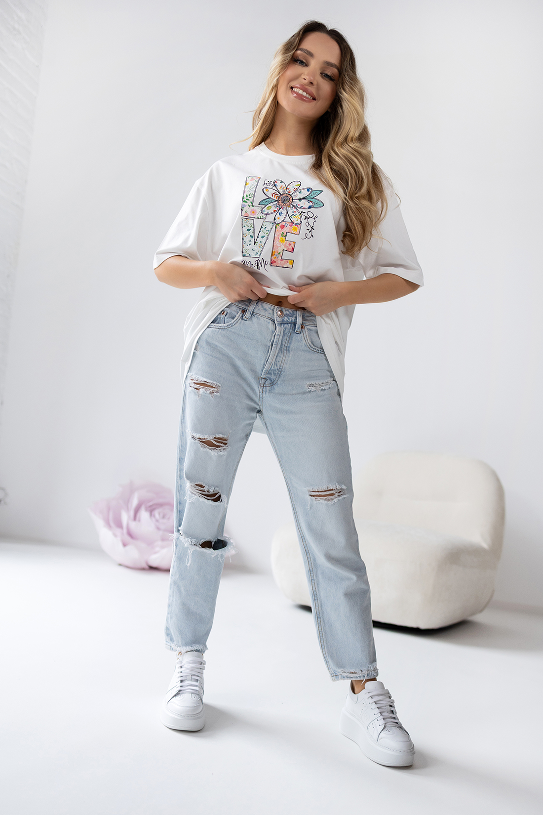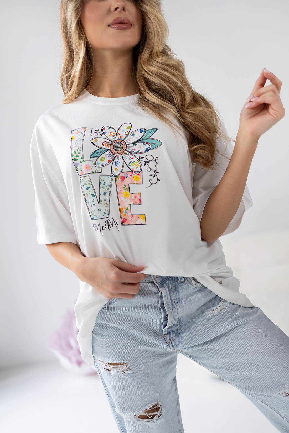 T-SHIRT LONG STOKROTKA LOVE – Off white